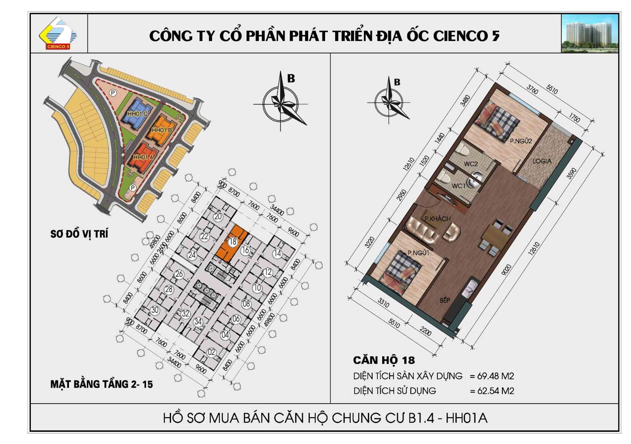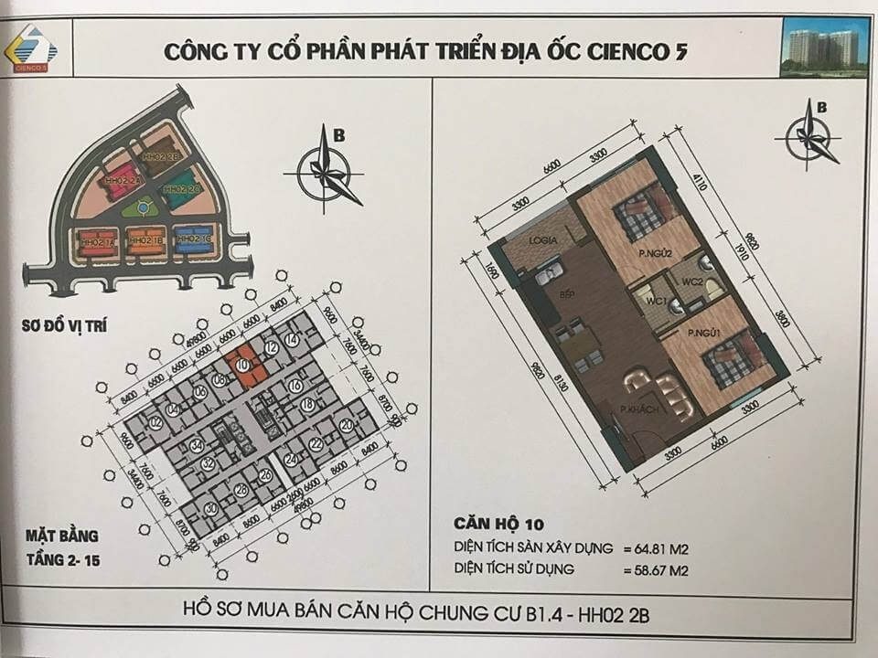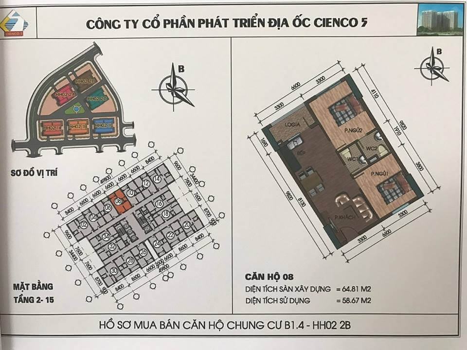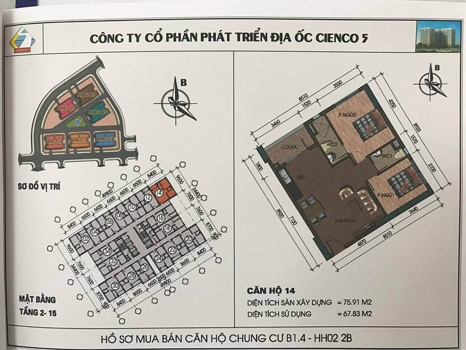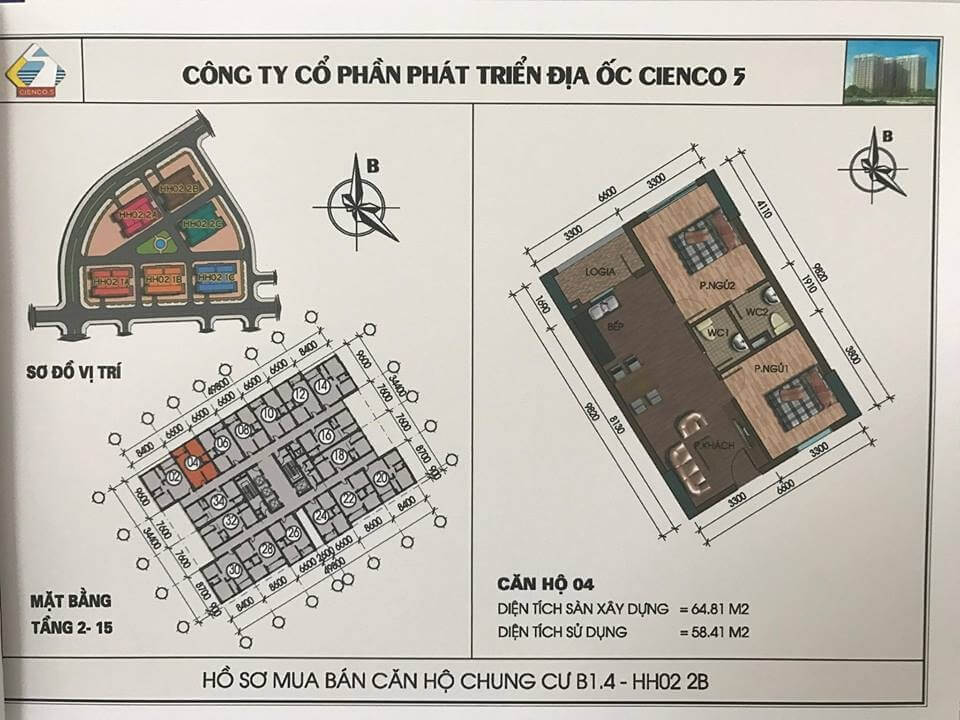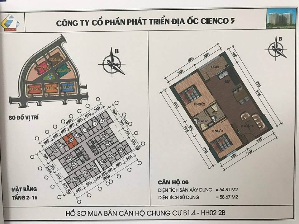 2/ Thiết kế 6 tòa khu trong, vào ở 2018, lô đất B1.4, ký hiệu HH02.