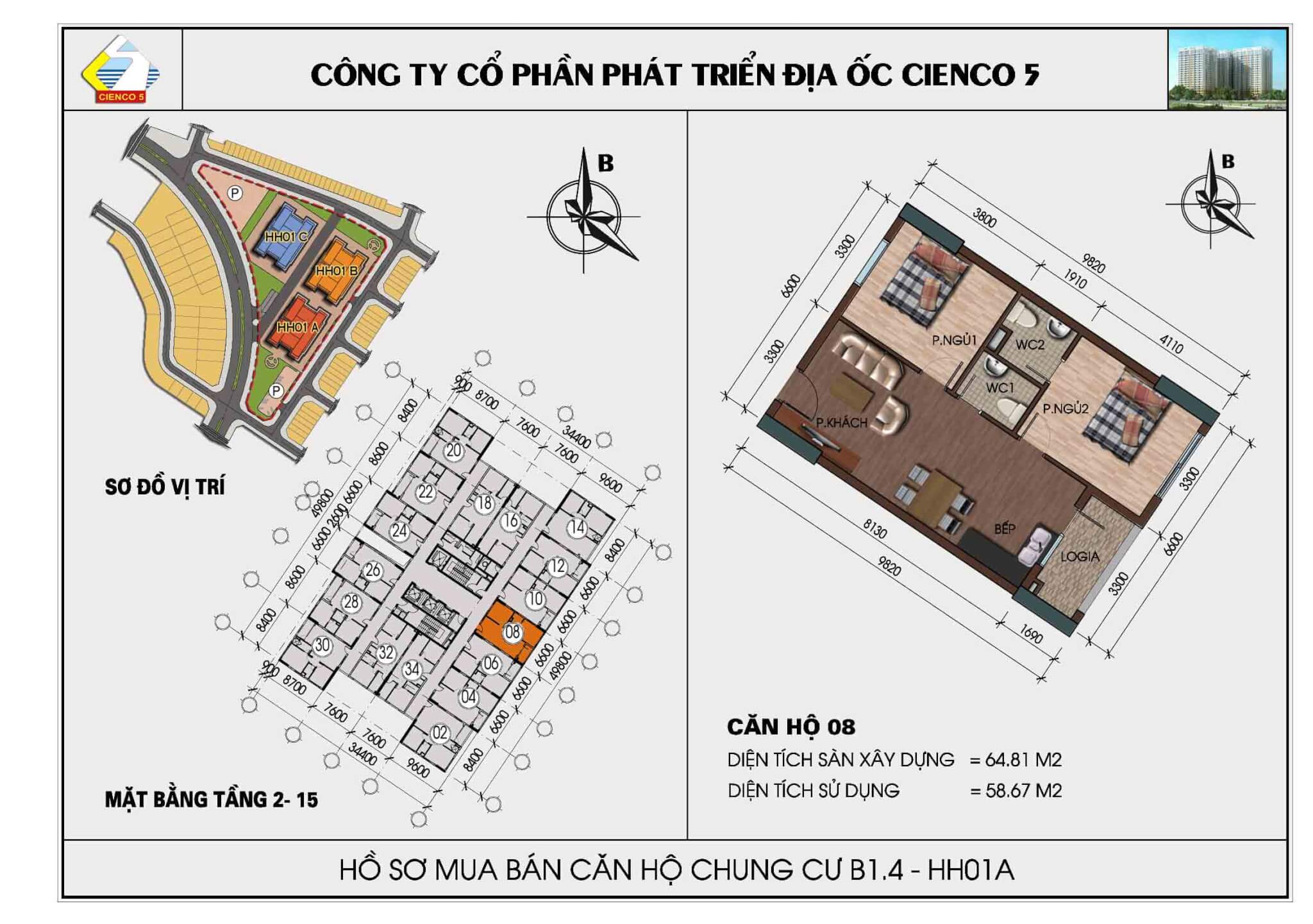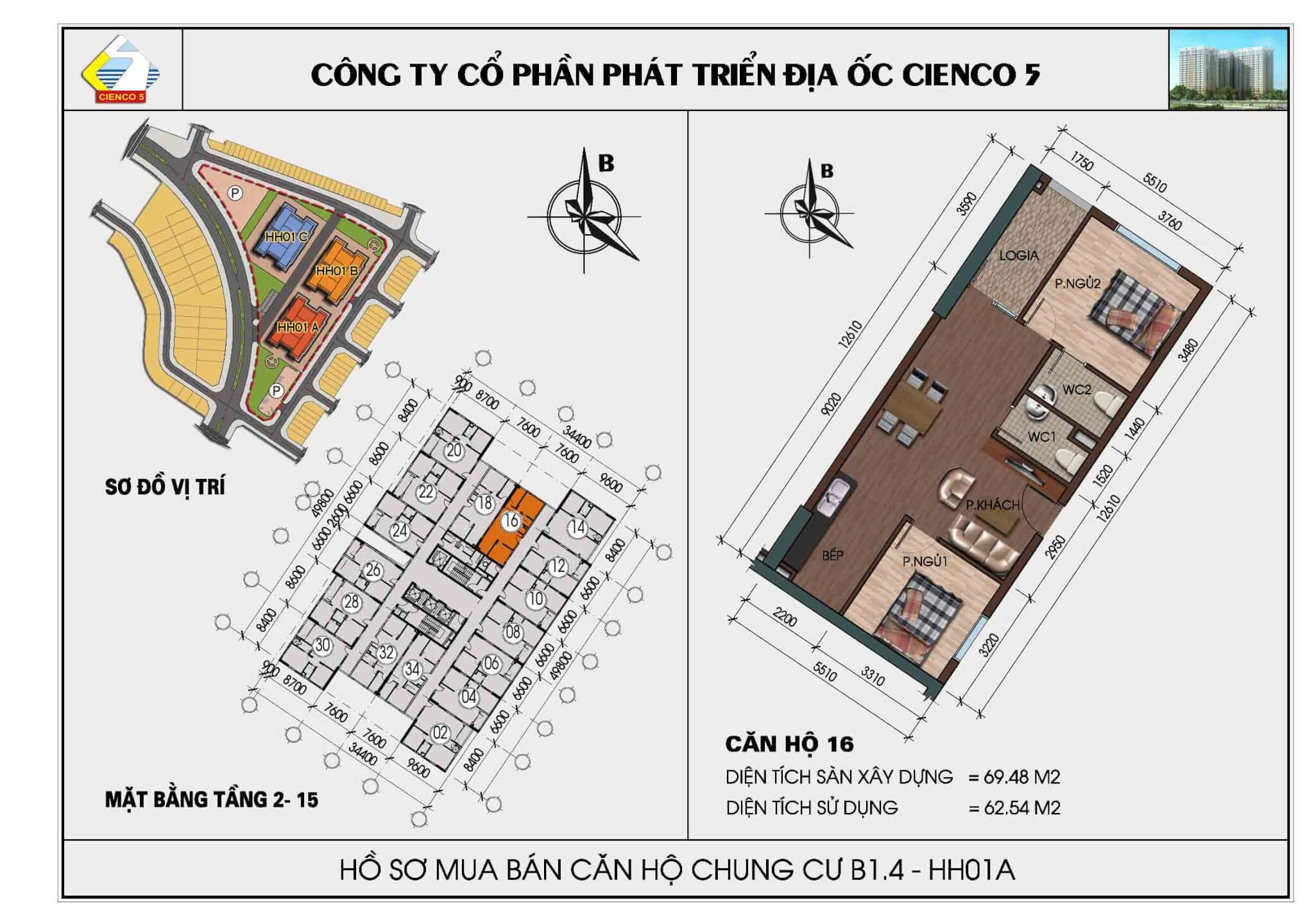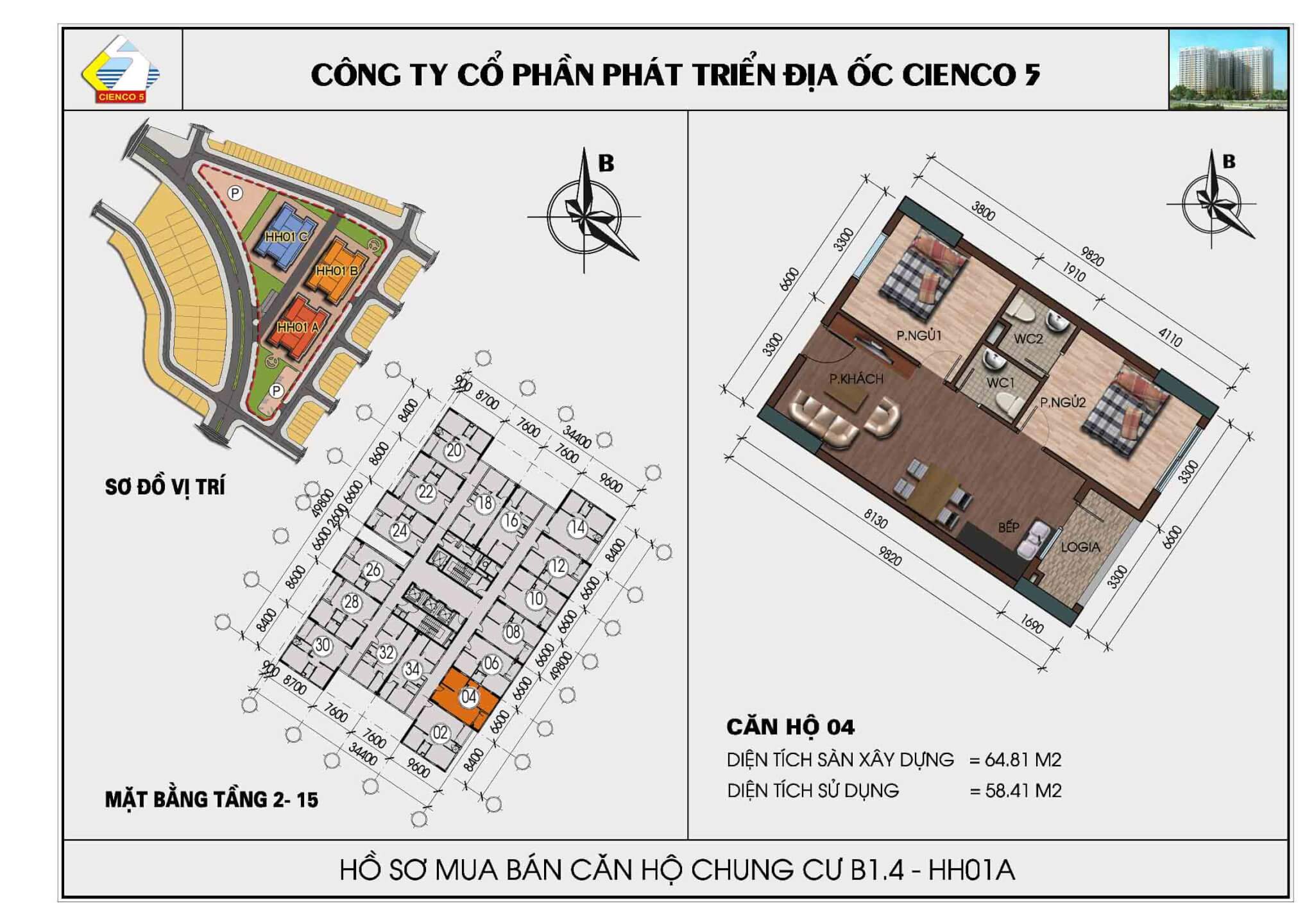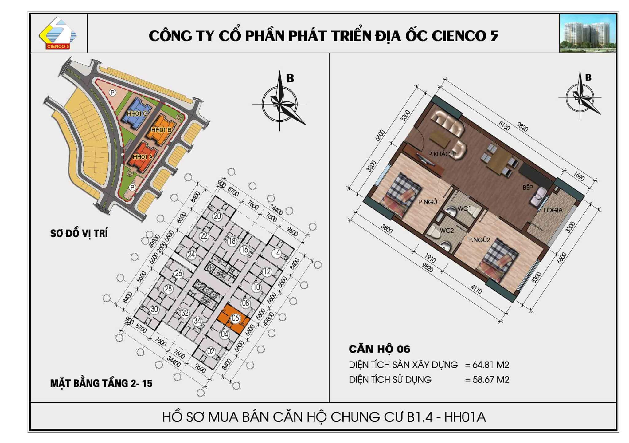 2/ Thiết kế 6 tòa khu trong, vào ở 2018, lô đất B1.4, ký hiệu HH02.