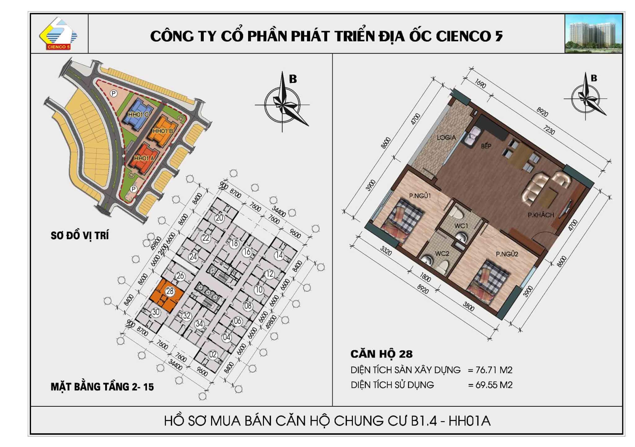 4/ Thiết kế 5 tòa mặt đường, vào ở 2020, lô đất B2.1, ký hiệu HH02