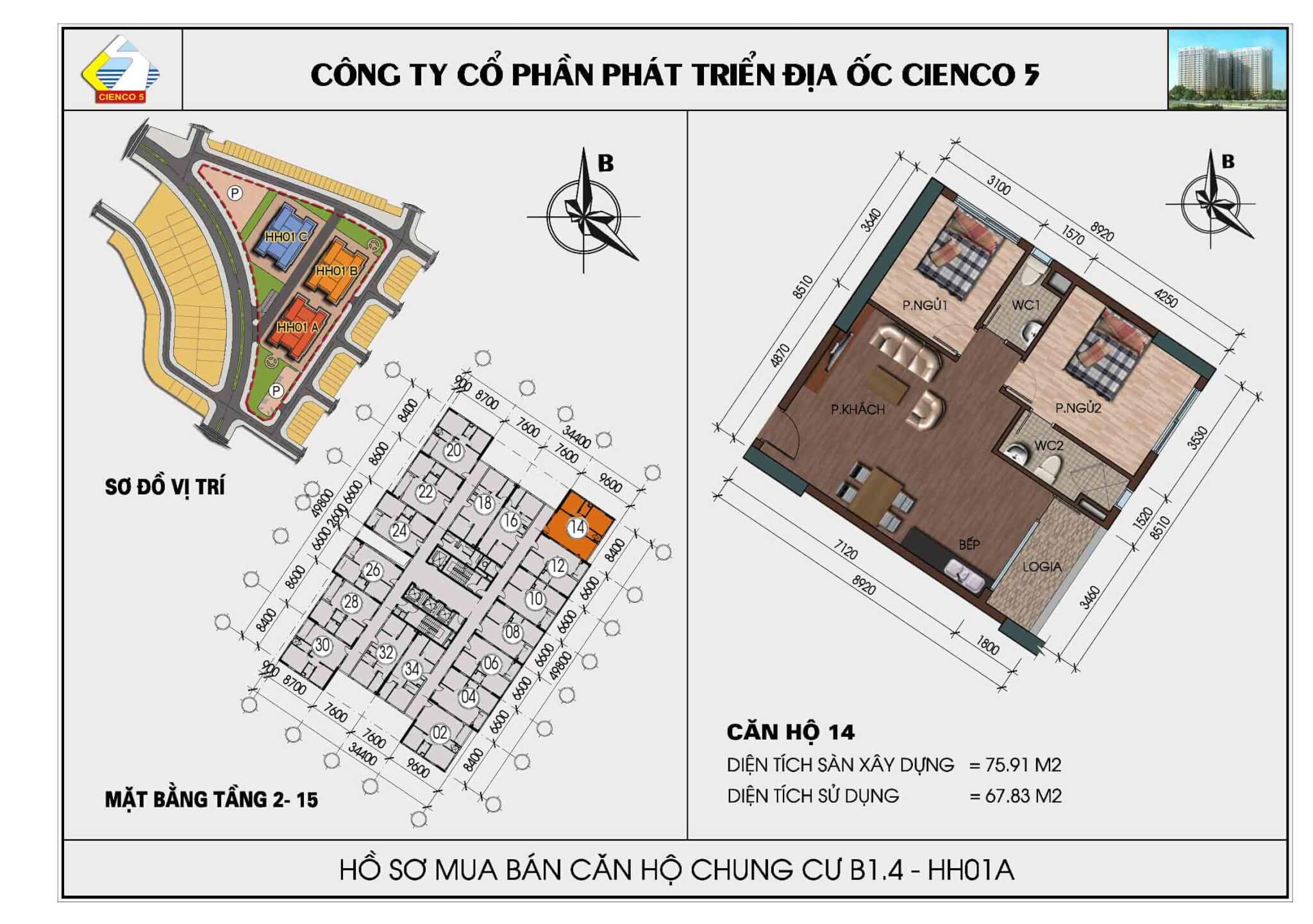 1/ Thiết kế 3 tòa đầu tiên, vào ở 2017, lô đất B1.4, ký hiệu HH01