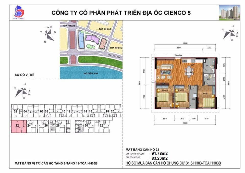 3/ Thiết kế 3 tòa ven hồ, vào ở 2019, lô đất B1.3, ký hiện HH03