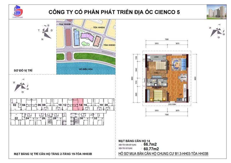 Mặt bằng, thiết kế căn hộ chung cư Mường Thanh Thanh Hà CIENCO5